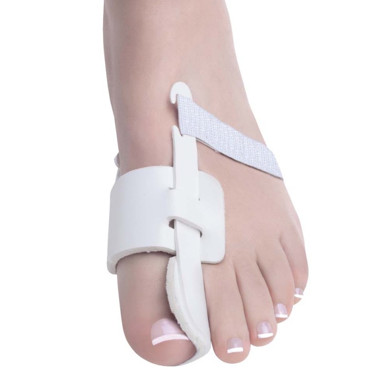 La fascia in plastica tiene il piede nella posiszione corretta durante la notte, seguendo il principio dei legami preventivi. Allevia il dolore tirando l’articolazione verso l’esterno, riallinea l’alluce e previene il possibile peggioramento.
