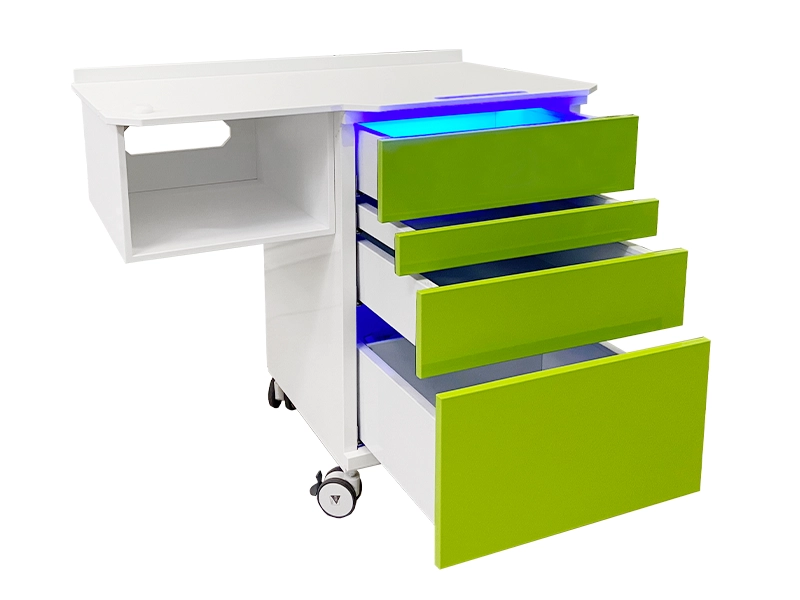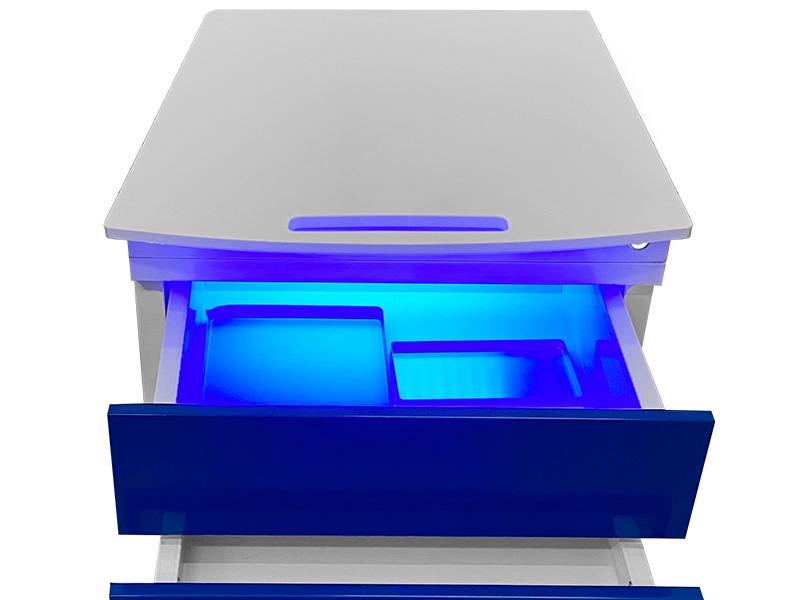Servomobile Podologia COLIBRI' M_Cassetti COLIBRI’ M Workstation è dotato di frontali in acciaio verniciato a polvere con apertura Push Pull. L’assenza di maniglie permette una grande facilità di pulizia.