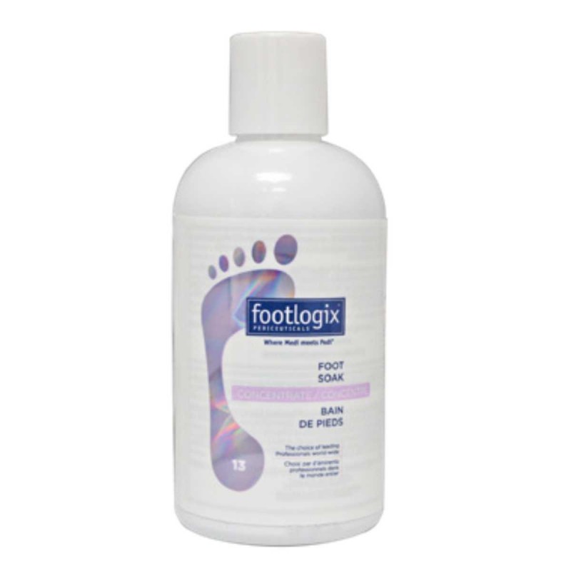 Footlogix® Foot Soak Concentrate è un pediluvio con pH bilanciato, dal delicato effetto detergente e con proprietà antimicrobiche che aiuta ad ammorbidire la pelle secca e ruvida senza disidratarla durante il pediluvio.