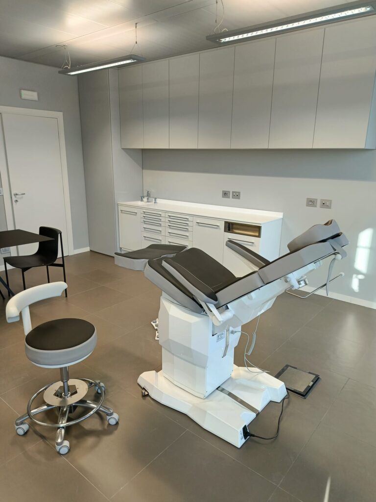 Riunito Podologico ALISEO 85, Poltrona Podologica 2MOTION, Seggiolino HP Gel e composizione Mobili serie Anthea installati presso l’ambulatorio Podologico della Dott.ssa Eleonora Mollicone a Frosinone.