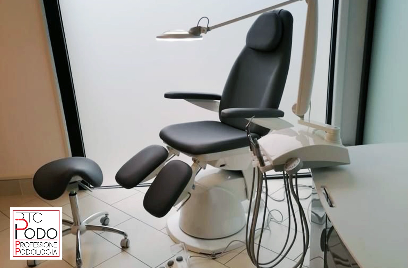 Set podologico composto da Riunito Podologico Colibrì Plus TS, Poltrona Podologica 2Motion e Seggiolino HP Gel installati presso l’Ambulatorio Podologico della Dott.ssa Claudia Paperini a Civitavecchia (RM).