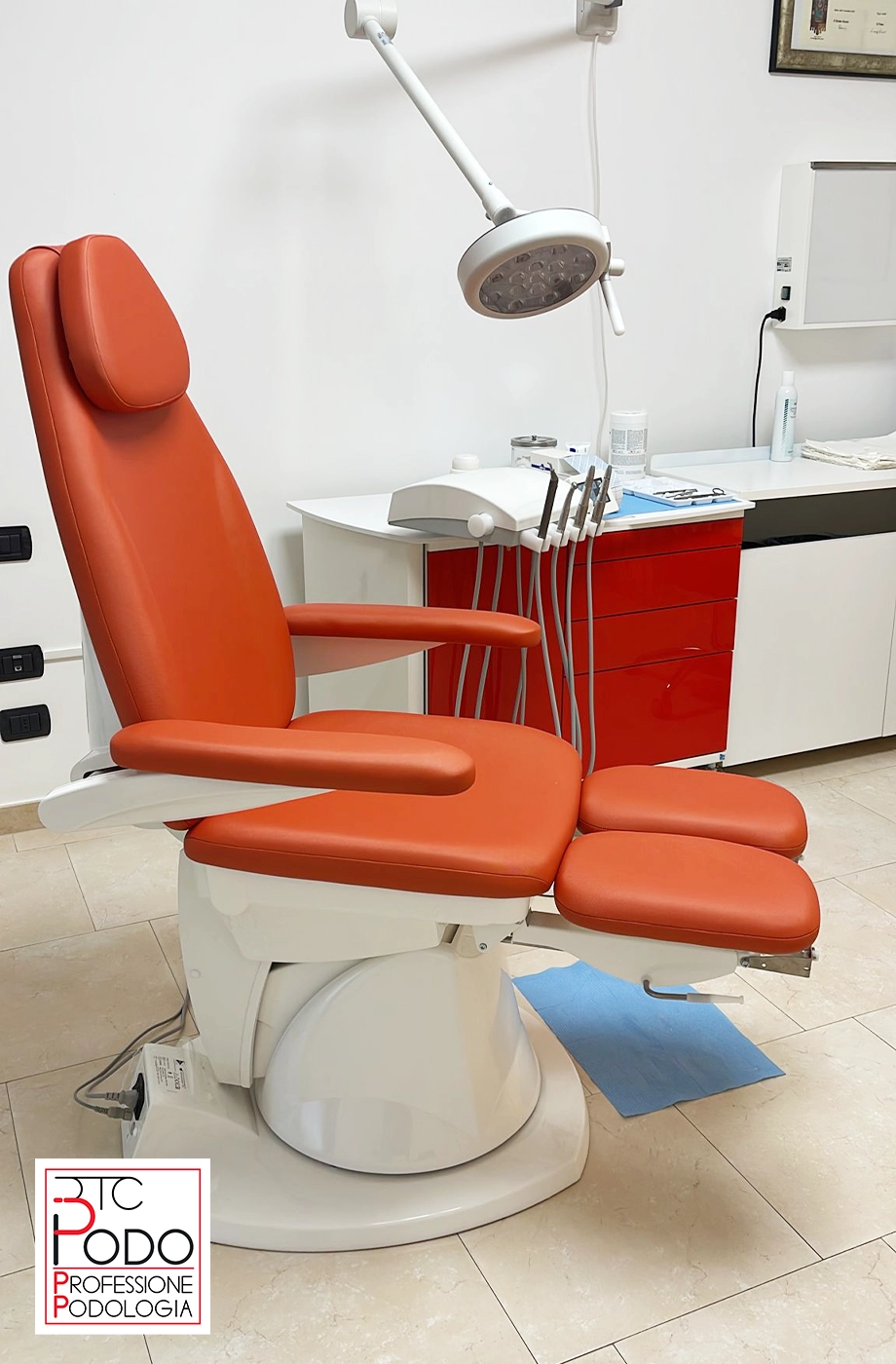 Poltrona Podologica top di gamma EDGE P con seggiolino operatore HP GEL e composizione mobili completa, installati presso il CENTRO DEL PIEDE di Venezia (VE)