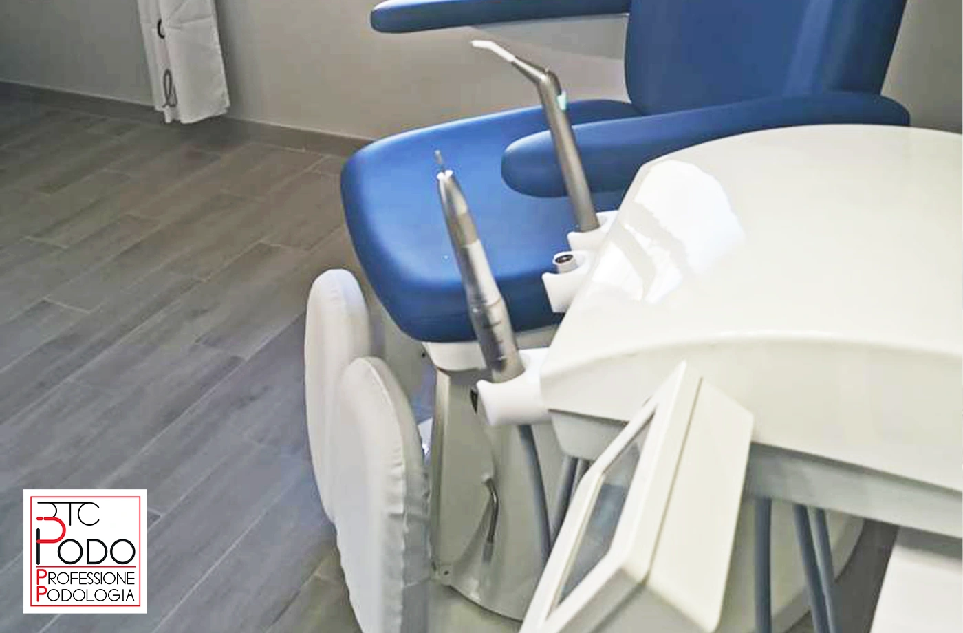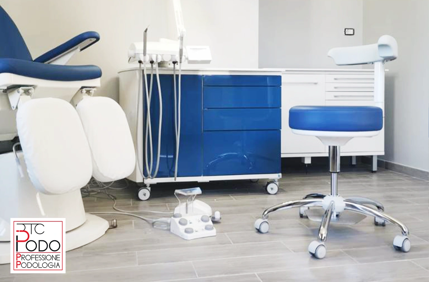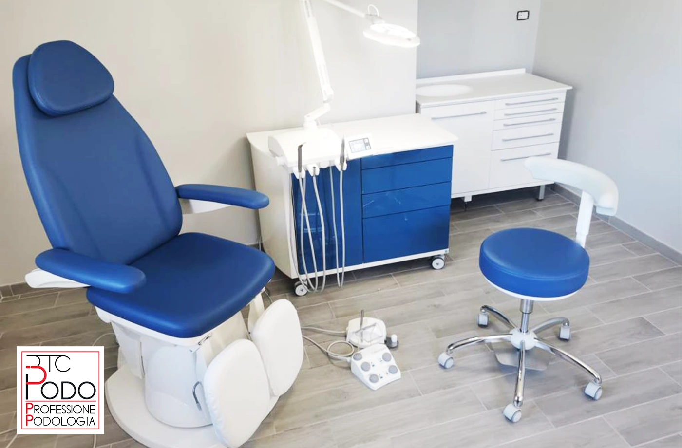 Riunito Podologico Colibrì Plus TS, Poltrona 1MOTION, Seggiolino HP Gel e Lampada Smart Light installati presso lo Studio Tecnico Ortopedico Centro Medico del Piede in provincia di Salerno.