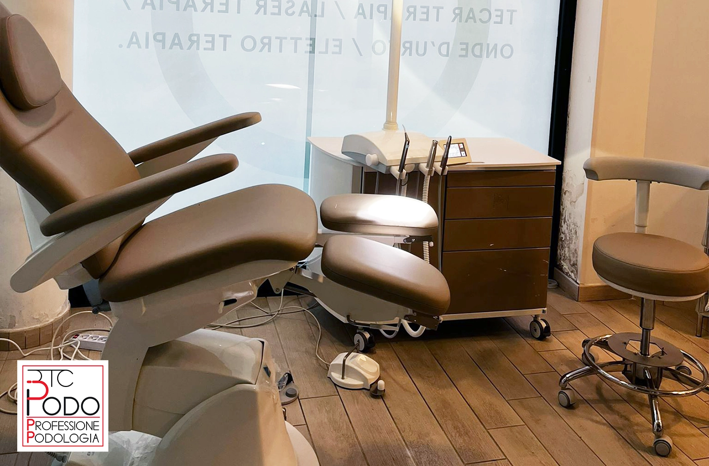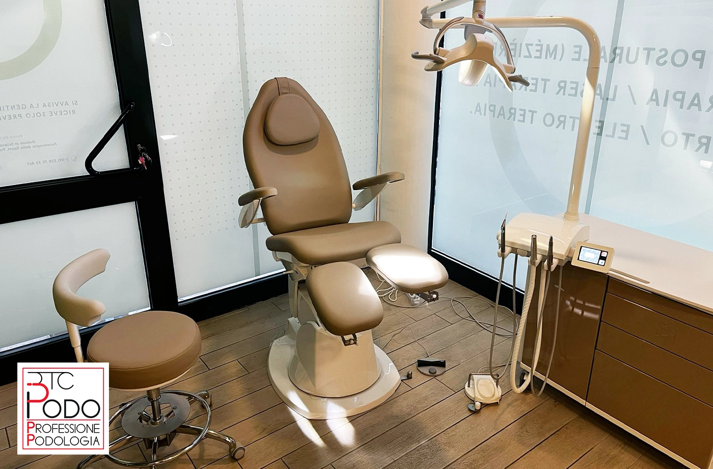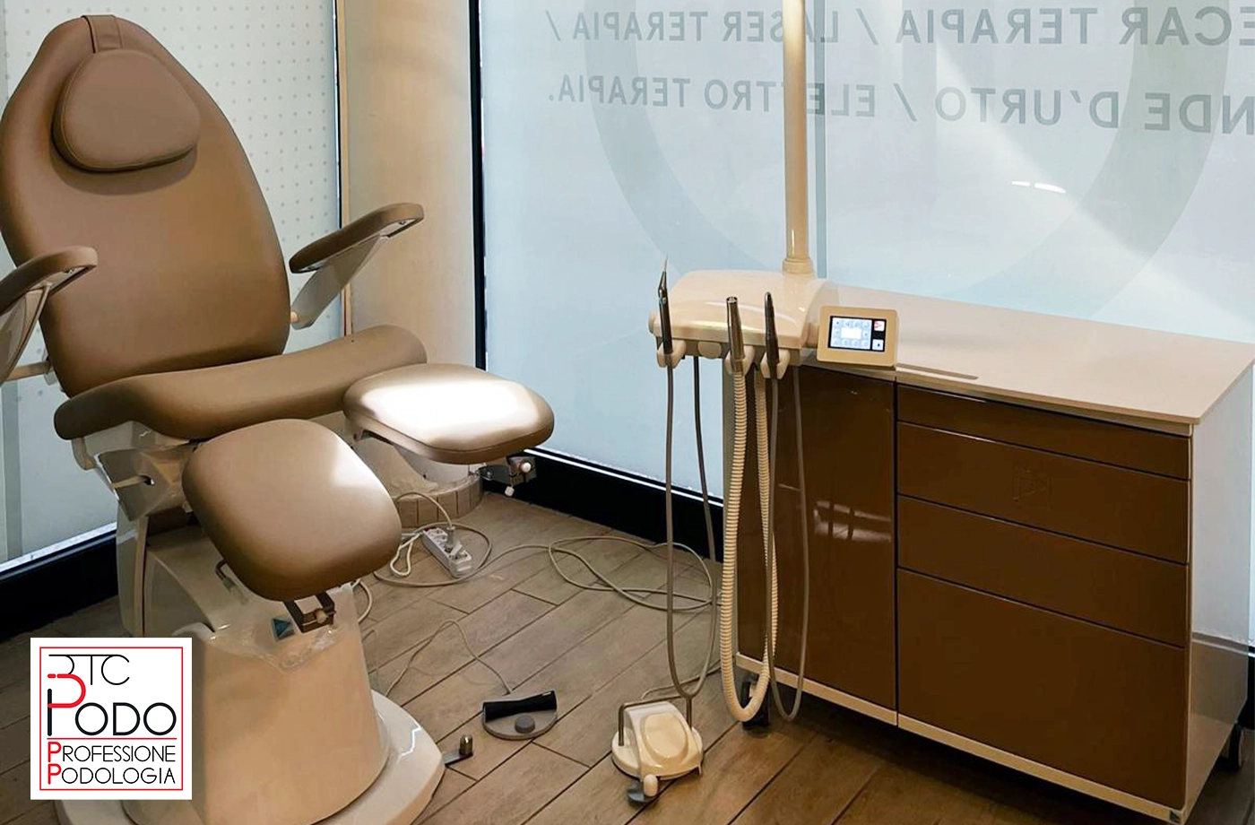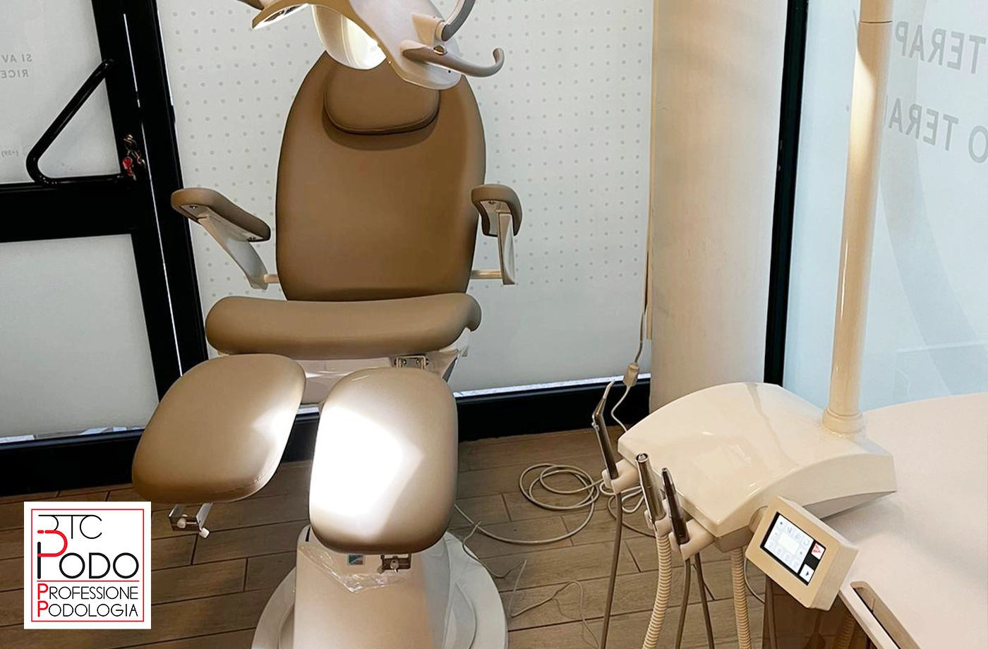 Riunito Podologico Colibrì Plus TS, Poltrona 1MOTION, Seggiolino HP Gel e Lampada Smart Light installati presso lo Studio Tecnico Ortopedico Centro Medico del Piede in provincia di Salerno.