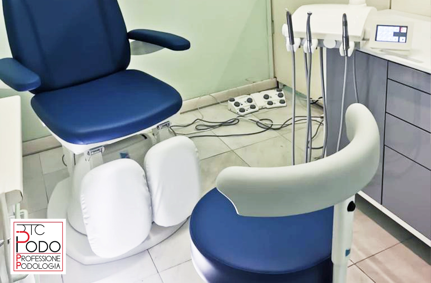 Riunito Podologico Aliseo 85 TS, Poltrona Podologica 1MOTION Style e Seggiolino HP Gel installati presso l’ambulatorio Podologico del Dr. De Donno a Maglie (LE).